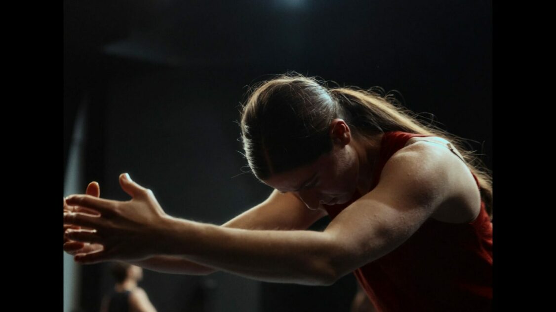 “ Avec Éclats, je creuse une tension entre l’écoute et l’imprévu, entre l’adaptation à l’autre et le surgissement du désir. Trois corps cherchent une forme commune, s’accordent et se réajustent, oscillant entre équilibre et rupture. Ce qui m’intéresse, c’est ce qui palpite en nous, ce qui surgit sans suivre un chemin tracé d’avance. Comment le chaos intérieur, l’élan, l’imagination trouvent-ils leur place dans un corps en relation aux autres ? Comment lâcher le contrôle tout en restant à l’écoute ?” – Léa Vinette.