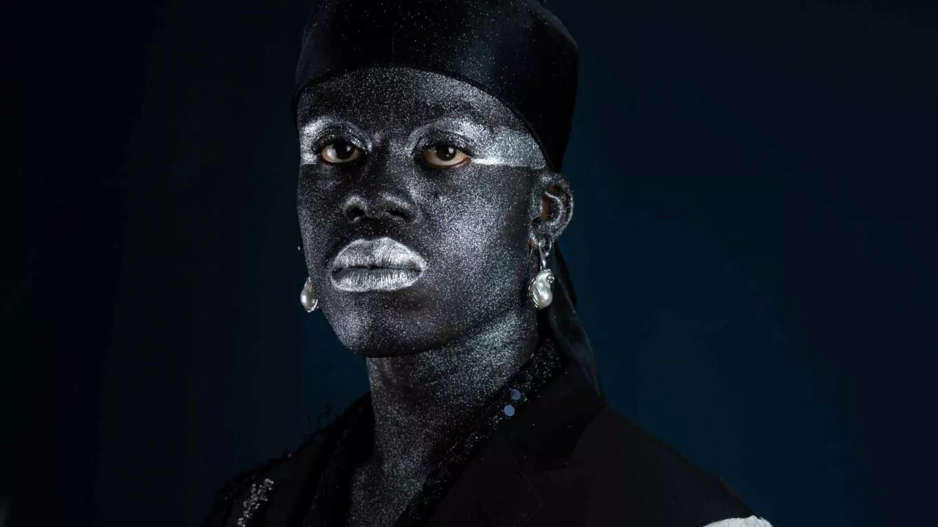 Anthony Martine se met en scène dans un conte – genre littéraire dans lequel les personnages noirs sont quasiment absents en France hexagonale. Il en reprend les codes et s’en déleste progressivement afin d’en créer un nouveau. Bienvenue dans un cabaret pop, musical, ambiance lamé paillettes ! Ici, c’est le Bouffon du roi, qui orchestre l’histoire, tel un véritable maître de cérémonie, passant en revue une succession de personnages comme Paris Ardant , version drag de Fanny Ardant, sorte de marraine la bonne fée qui va accompagner Anthony dans toutes ses premières fois.
