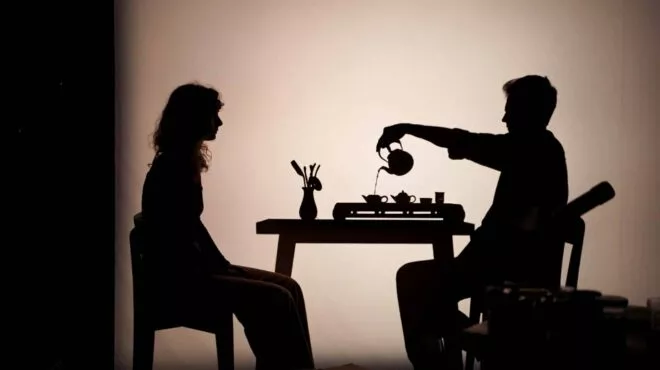 Entre théâtre et cinéma, c’est le récit intime d’une relation entre un père et sa fille, entre le passé et l’avenir, où les émotions parfois douces, parfois amères, se déploient comme une fleur de thé plongée dans l’eau.