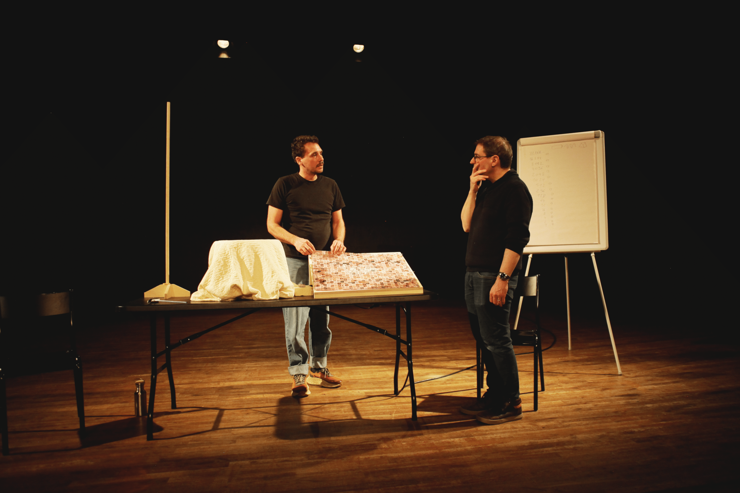 Jean Le Peltier, auteur, metteur en scène et interprète, et Yann Pellegrin, directeur de recherche au CNRS et chercheur en chimie des matériaux photosensibles.