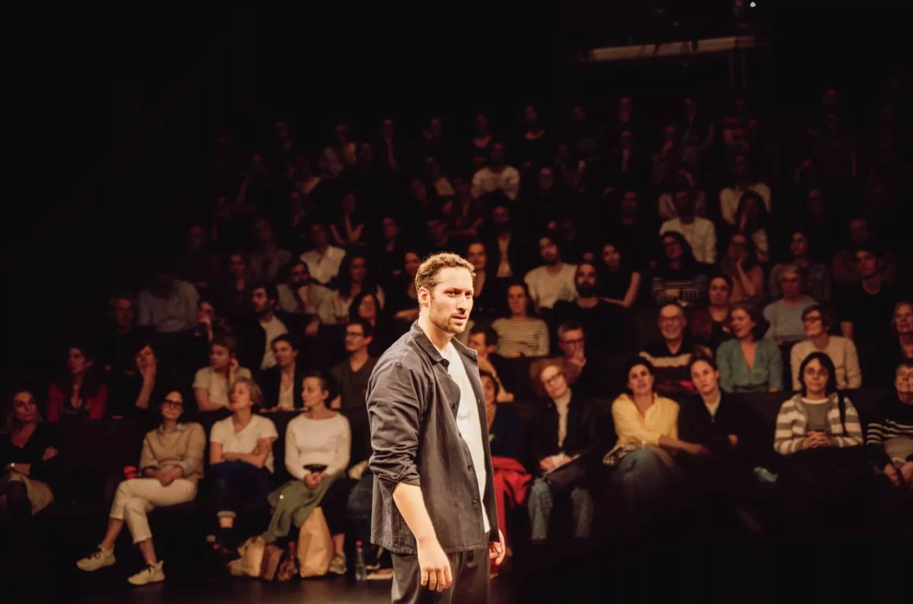 "Le plateau est un terrain de jeu sommaire à peine accessoirisé qui attend les acteur·rices." Anne-Laure Thumerel